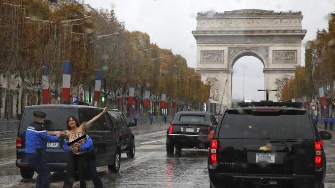 Обнаженная активистка попыталась остановить кортеж Трампа в Париже