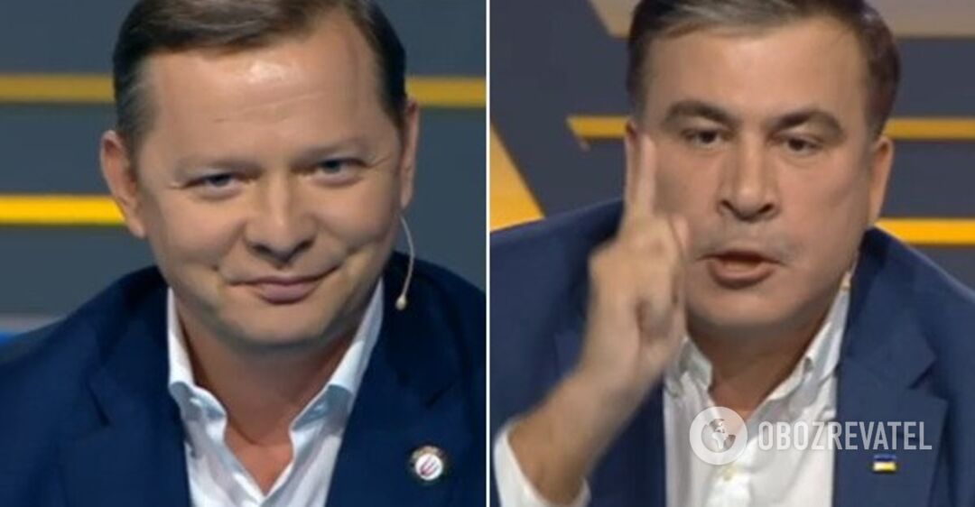 Экс-президент Грузии, бывший губернатор Одесской области Михаил Саакашвили и депутат Верховной рады Олег Ляшко устроили перебранку в прямом эфире телеканала "НАШ".
