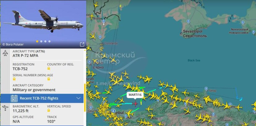"Часть украинских БЭКов ушла в сторону территориальных вод Турции, после чего ВВС Турции подняли морской разведчик на контроль акватории и обеспечение безопасности форватера и траверз своих судов", - сообщает "Condottiero".