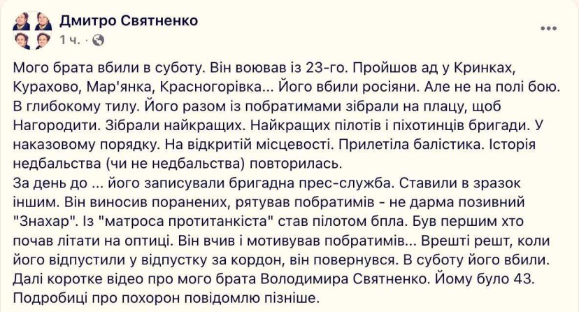 — в зоне действия группировки войск «Днепр» уничтожены более 70-ти военнослужащих, боевая машина пехоты, 15 автомобилей, 155 мм гаубица М777 производства США, пусковая установка зенитного ракетного комплекса «Бук», четыре безэкипажных катера, три станции радиоэлектронной борьбы, три склада боеприпасов, склад горючего и три склада материальных средств.