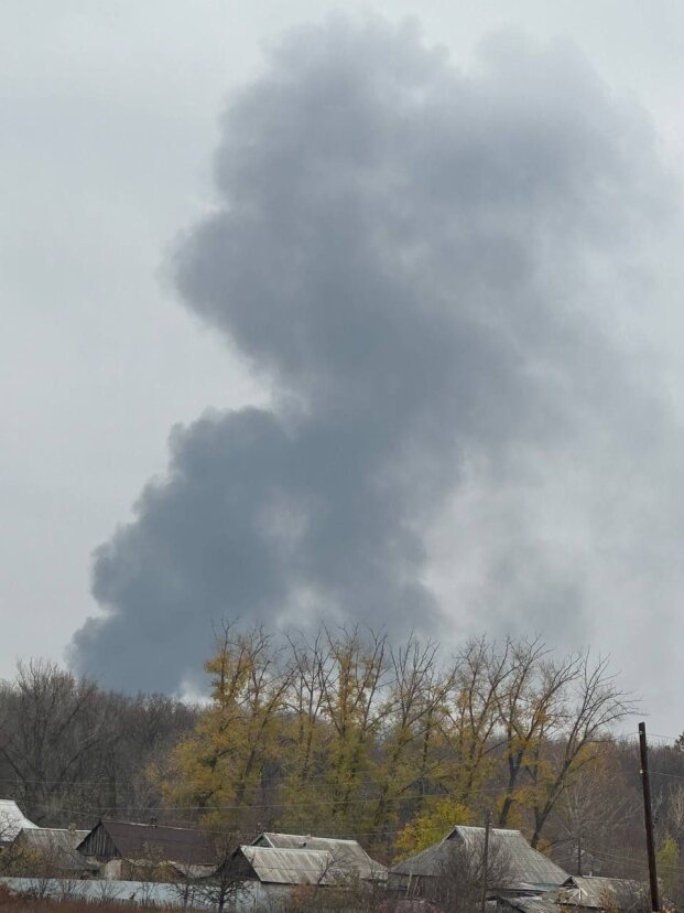 По предварительным данным, поражён склад боеприпасов. Сообщается о вторичной детонации.
