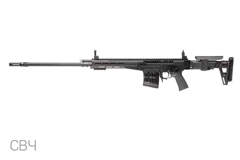 Новая снайперская винтовка Чукавина (СВЧ) была разработана концерном «Калашников» по заданию Министерства обороны для замены снайперской винтовки Драгунова (СВД). Масса винтовки без магазина составляет 4,8 кг, общая длина (с разложенным прикладом и пламегасителем) – 1170 мм, длина ствола – 620 мм. СВЧ имеет надежную газоотводную автоматику с коротким ходом газового поршня и трехпозиционным поворотным газовым регулятором. Прицельная дальность – 1000 метров.