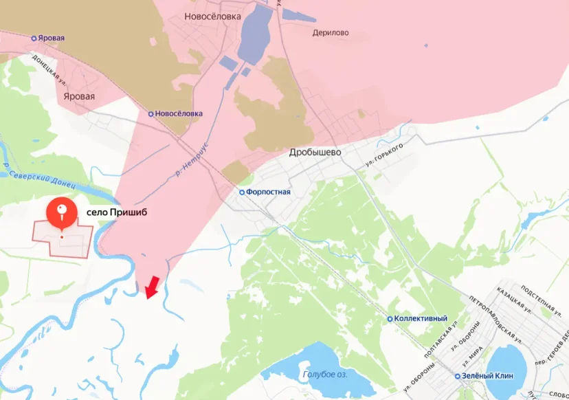 Российские войска продвигаются на севере Донецкой Народной Республики. С начала суток подразделения ВС РФ продвинулись примерно на 3 км вдоль Северского Донца восточнее города Святогорск. Продвижение началось от станции Новосёловка и достигло территории в районе излучины Северского Донца юго-восточнее села Пришиб.